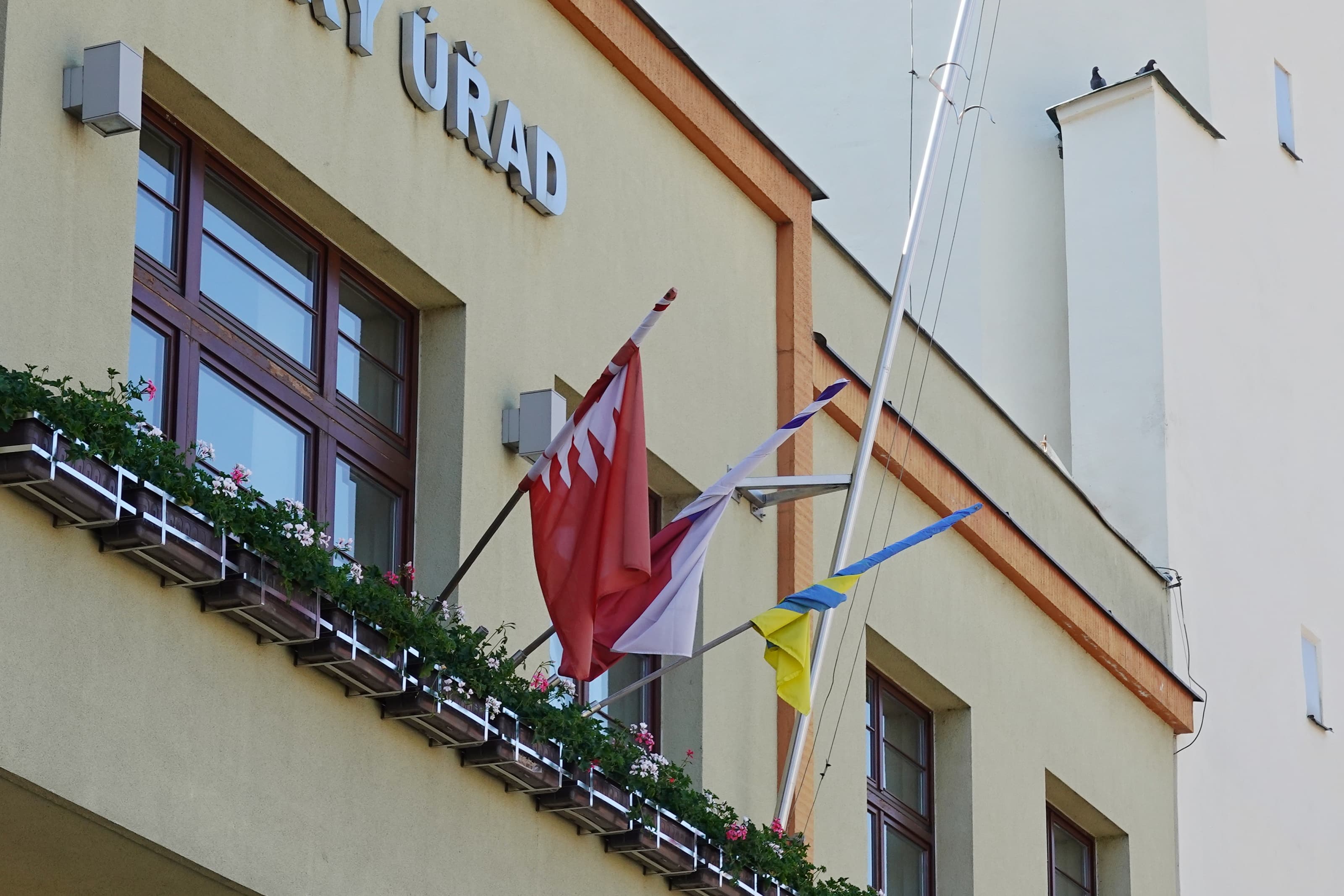 HRDOST: Ukrajinská vlajka, která přes časté slovní útoky stále vlaje na radnici.